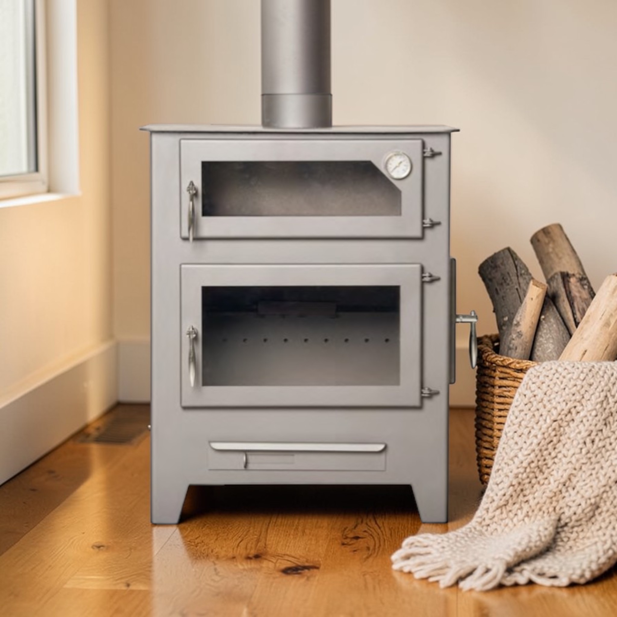 Su diseño compacto y rústico encaja perfectamente en casas de campo, salones, cocinas, apartamentos rurales, bodegas y espacios donde se busca un ambiente cálido y acogedor. Además, su estructura robusta garantiza una larga durabilidad, incluso con usos intensivos durante los meses más fríos.